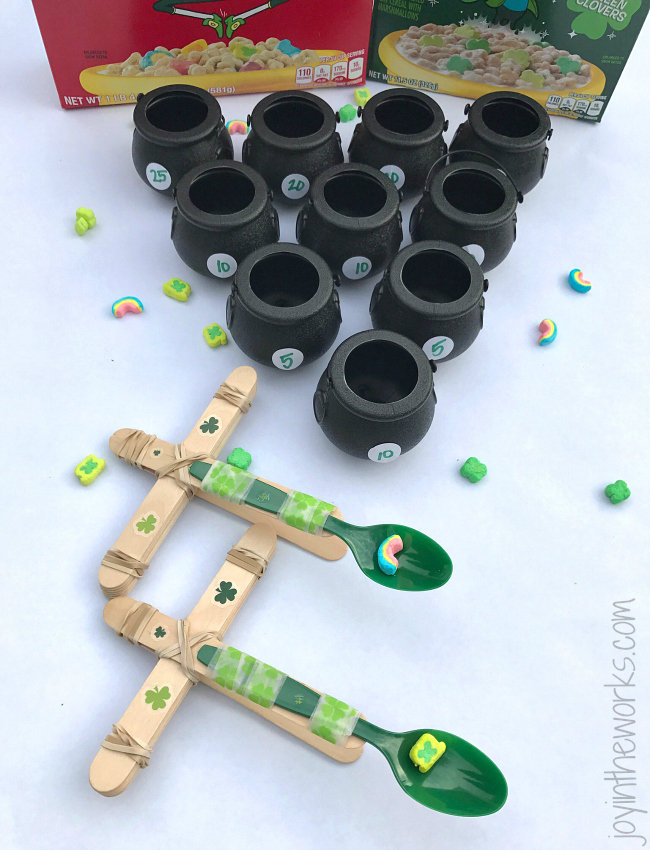 Make Lucky Charms Catapults, the perfect #STEM activity for St. Patrick's Day! Add in an extra level of fun with point values and pot of gold target practice!